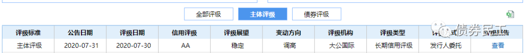 根據(jù)wind最新的公開材料,中國第一重型機械股份公司的主體信用評級在2020年7月30日正式上調(diào)至AA,評級機構(gòu)為大公國際。