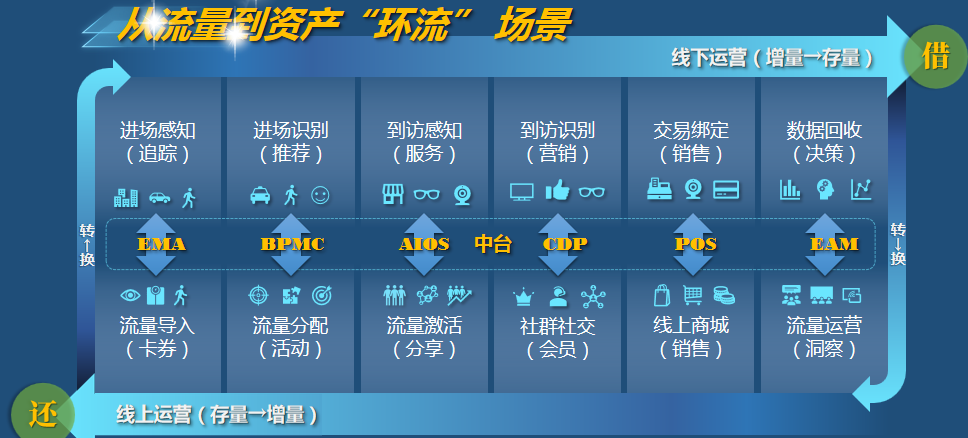 瑞為信息技術高級副總裁張燦指出,從流量到資產的沉淀過程中,大悅城涉及12個場景。其中,最重要的環節有兩個:一是loT中臺系統應用;二是設置POS交易系統,完成閉環。當然,沒有AI介入是做不到的。