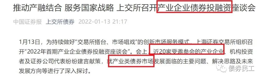 2022年1月13日,上海證券交易所專門(mén)召開(kāi)了產(chǎn)業(yè)企業(yè)債券融資座談會(huì),聚焦產(chǎn)業(yè)債發(fā)展難點(diǎn),暢通企業(yè)融資渠道。
