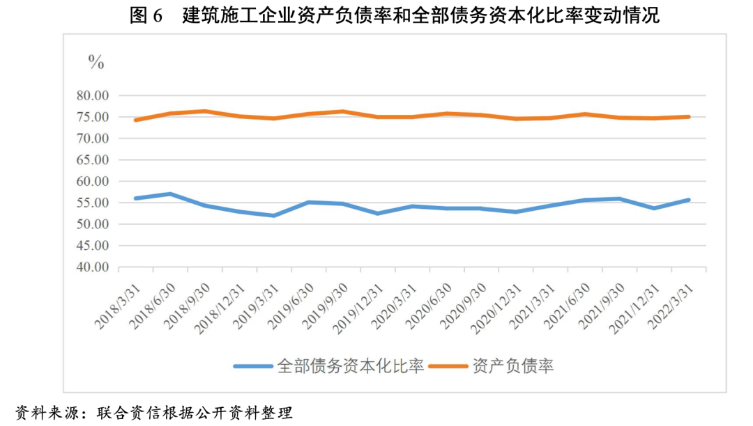聯合資信選取中國建筑股份有限公司和中國中鐵股份有限公司等公開發債主體作為樣本企業[1],以下通過其披露的2022年一季度財務報表進一步分析建筑業運行狀況。