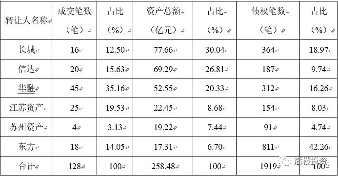 整年完成5次以上交易的銀行僅有4家,且高度集中在工行。這表明了銀行端出讓不良資產的分散。