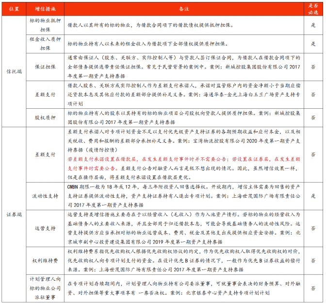 CMBN產品的增信措施方面設置非常全面,尤其是在外部增信措施,涵蓋了不動產抵押、股權質押、應收債權質押、連帶責任保證/差額補足和流動性安排等多種方式。