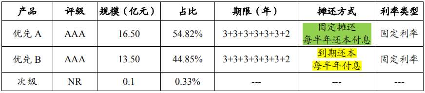 以“北京首都開發股份有限公司 2020 年度第一期資產支持票據”為例,根據募集說明書披露,優先級證券按照攤還方式不同分為優先A和優先B,優先A每半年還本付息,優先B每半年付息,到期還本。