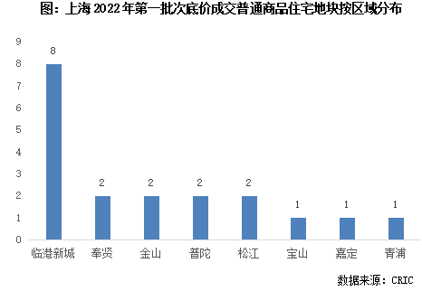 3)底價成交地塊:共有19宗。其中,13宗地塊集中于浦東臨港、奉賢新城、青浦重固、金山新城等近期樓市表現不佳的遠郊片區。除了樓市成交遇冷因素外,片區內潛在庫存高位也是房企拿地積極性不高的原因。以臨港片區為例,自上海集中供地以來,臨港就是上海的主力供應區域,加上此次成交的8幅地,自去年以來合計成交了30幅地,總建面高達567萬平方米,按照臨港片區當前的流速來看,消化周期長達5年以上。
