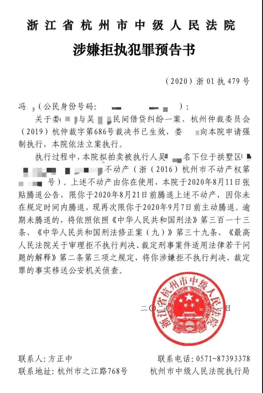 人民法院在此背景下,創(chuàng)造出了新的執(zhí)行手段——涉嫌拒執(zhí)犯罪預(yù)告(或拒執(zhí)犯罪線索預(yù)移送立案偵查通知),即在正式拒執(zhí)移送之前,增加了一個(gè)執(zhí)行的方式手段。
