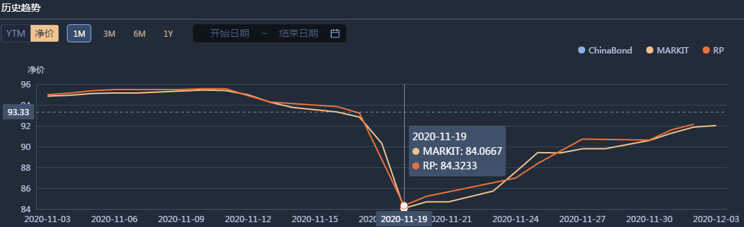 綠地控股6.125 2023-04-22歷史凈價趨勢圖 圖源:DM終端