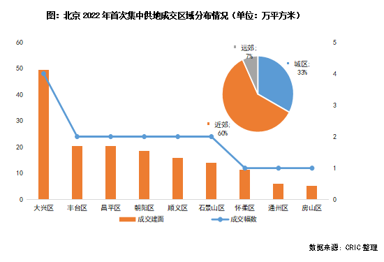 其次城區(qū)占比33%,豐臺區(qū)、朝陽區(qū)和石景山區(qū)各成交2宗地塊;遠(yuǎn)郊僅懷柔區(qū)出讓1宗懷柔老城板塊的綜合用地,建筑面積占比為7%。