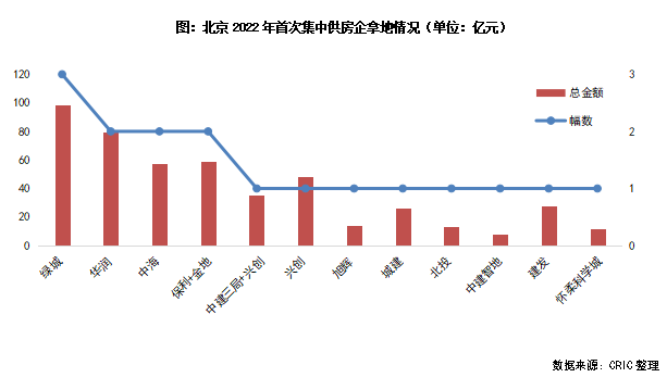 在2022年的北京首輪集中供地上,10強(qiáng)房企表現(xiàn)仍然搶眼,且北京本土平臺公司拿地也較為積極。
