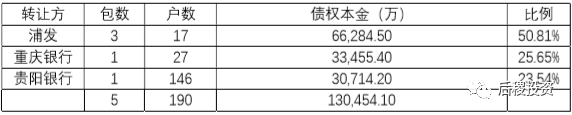 2017 年,貴州省銀行一級(jí)市場(chǎng)出包5 個(gè),190 戶(hù),本金13.05 億,其中浦發(fā)占比50.81%,出包最多。