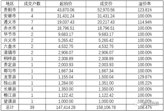 從成交戶(hù)數(shù)上分析,貴陽(yáng)市、安順市、遵義市相對(duì)交易較為活躍,其中貴陽(yáng)市溢價(jià)率最高,拍品質(zhì)量相對(duì)最好。