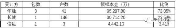 2017 年華融收包最多,占比73%,長(zhǎng)城次之,占比23%。