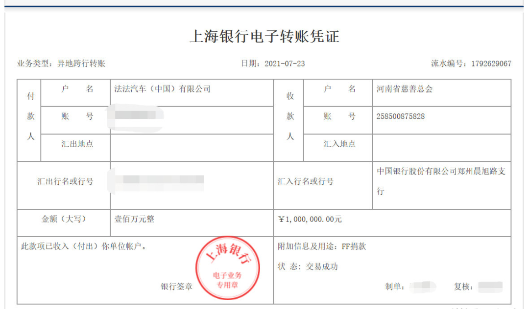 值得一提的是,此次河南災(zāi)情,法法汽車(中國)汽車有限公司也向河南省慈善總會捐款100萬元。賈躍亭還@河南省慈善總會表示,“我們剛起步,盡一點(diǎn)綿薄之力。成為一家上市公司只是FF的開始,構(gòu)建共享共創(chuàng)的出行未來才是我們的使命。”