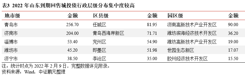 2022年山東省城投債到期回售壓力研究