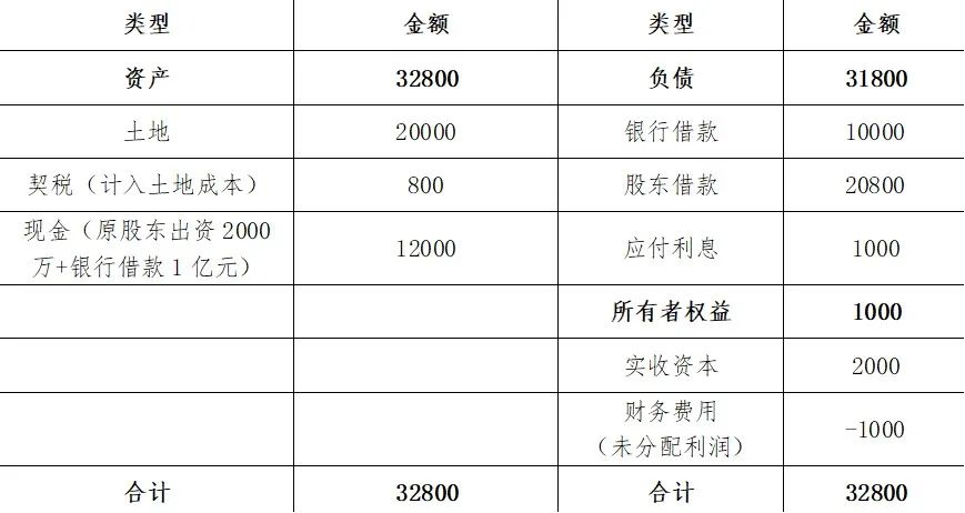 原股東出資2000萬成立項(xiàng)目公司,且原股東額外向項(xiàng)目公司提供2億元借款用于支付新獲取地塊的土地價(jià)款、提供800萬元借款用于支付契稅。為維持公司正常經(jīng)營,向銀行借款1億元,應(yīng)付未付利息1000萬元。除此之外無其他業(yè)務(wù)。