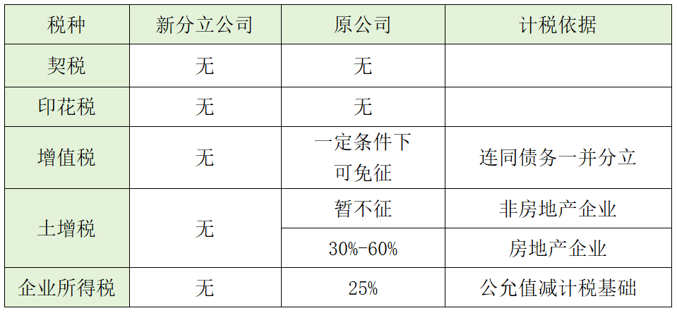 而原公司,在企業分立模式下,涉及三大稅種,具體來說: