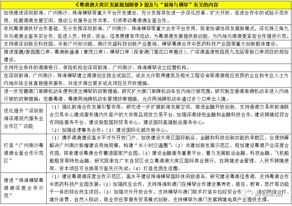 深圳前海深港現代服務業合作區方面,主要是把原前海合作區的政策進行平移,推動前海新舊合作區一體化、前海合作區與香港金融市場一體化,該方案大致有以下幾個方面值得關注: