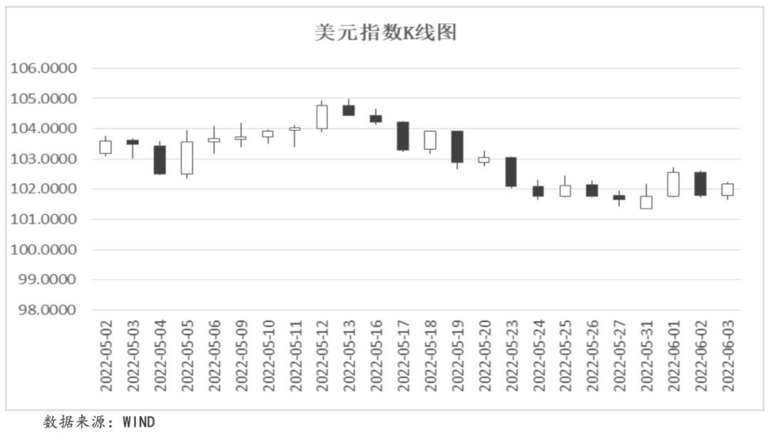本周,美國(guó)經(jīng)濟(jì)數(shù)據(jù)的超預(yù)期走好和美聯(lián)儲(chǔ)加息預(yù)期的增強(qiáng)都對(duì)美元形成一定支撐。周三,美聯(lián)儲(chǔ)正式開啟“縮表”及美聯(lián)儲(chǔ)官員“鷹派”言論都支撐美元上漲;周四,5月“小非農(nóng)”數(shù)據(jù)(ADP就業(yè)數(shù)據(jù))錄得12.8萬(wàn)人,不及市場(chǎng)預(yù)期的30萬(wàn)人,對(duì)美元造成打壓;周五,非農(nóng)數(shù)據(jù)的超預(yù)期走好,支撐美元再度上行。截至本周五,美元指數(shù)收于102.1704,周內(nèi)累計(jì)收漲0.81%。