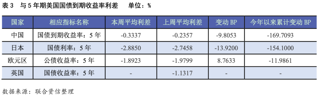 各期美債收益率全線上漲,主要經(jīng)濟(jì)體國(guó)債與美債收益率利差走勢(shì)不一