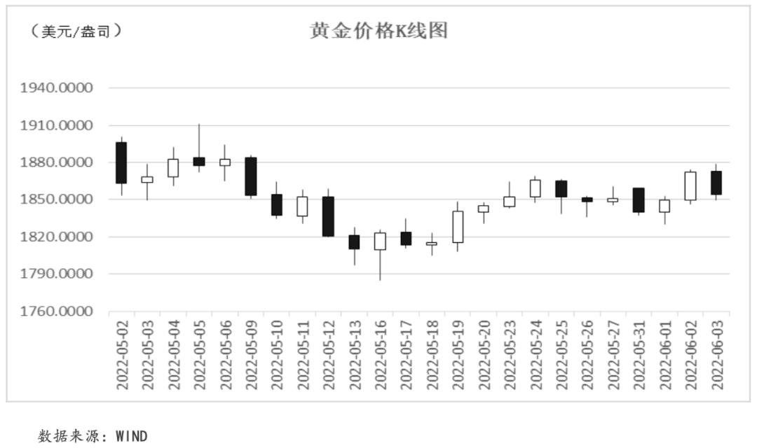 本周,黃金價(jià)格在美聯(lián)儲(chǔ)官員“鷹派”言論、美國(guó)經(jīng)濟(jì)增長(zhǎng)前景和就業(yè)數(shù)據(jù)等多方因素的影響下呈現(xiàn)波動(dòng)走勢(shì)。周二,美聯(lián)儲(chǔ)官員的“鷹派”言論以及美聯(lián)儲(chǔ)主席鮑威爾與美國(guó)總統(tǒng)拜登就通脹問(wèn)題的會(huì)面拉升長(zhǎng)期美債收益率大幅走高,相應(yīng)削弱了黃金的吸引力。周四,美國(guó)“小非農(nóng)”數(shù)據(jù)(ADP就業(yè)數(shù)據(jù))不及預(yù)期,引發(fā)市場(chǎng)擔(dān)憂情緒,黃金價(jià)格出現(xiàn)上漲。周五,美國(guó)非農(nóng)數(shù)據(jù)超預(yù)期走好,顯示勞動(dòng)力市場(chǎng)依舊強(qiáng)勁,黃金價(jià)格受此承壓。截至本周五,COMEX黃金價(jià)格收于1853.90美元/盎司,周內(nèi)累計(jì)收跌0.30%。