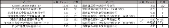 從數據來看,湘江銀行出包最多。星沙農村商業銀行、中航信托轉讓公告中未披露成交金額。