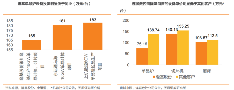 除此之外,也將觸手伸及設(shè)備端。例如隆基股份,在設(shè)備端參股連城數(shù)控,使得成本端具備名明顯的競(jìng)爭(zhēng)優(yōu)勢(shì)。