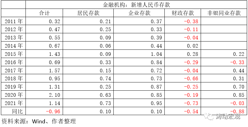 今年11月當(dāng)月,居民存款與企業(yè)存款分別新增0.73萬億和0.95萬億,同比分別多增0.10萬億和0.10萬億,創(chuàng)歷年11月新增最高。與此同時(shí),財(cái)政存款與非銀同業(yè)存款10月當(dāng)月分別少增0.54萬億元和0.88萬億元,反映出政府債券發(fā)行、投資支出增加以及非銀體系流動(dòng)性下降等因素。
