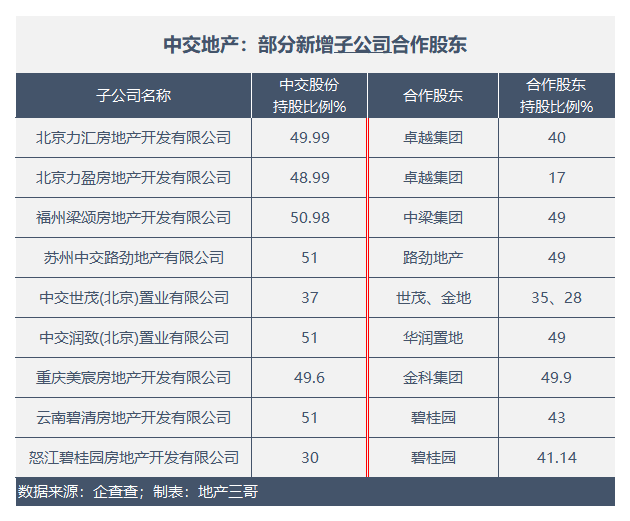2、新增的子公司中,有中交地產獨資的,也有相當比例是公司和合作方共同投資的: