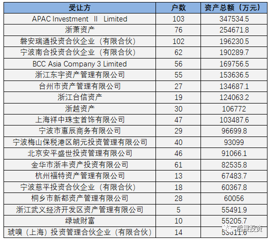 1、三級市場投資機(jī)構(gòu)收包出包排行榜