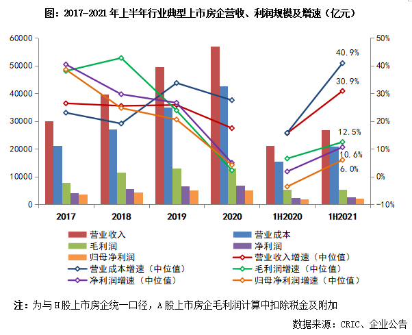 2021年上半年,不少房企都實現營收與利潤規模同比顯著增長,主要原因是去年同期受到疫情影響較大,基數相對較低,而今年以來開工建設、竣工交付進度平穩推進,也是市場節奏恢復的表現。但仍有三成房企毛利同比降低,利潤規模增長承壓。