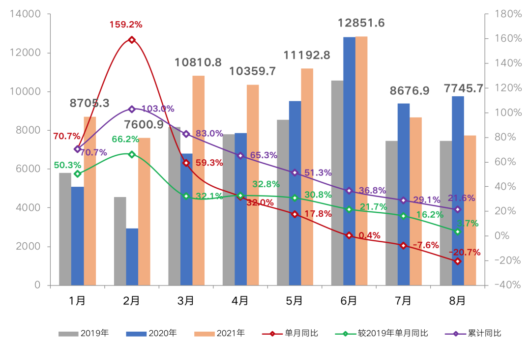 圖:2021年1-8月百強房企