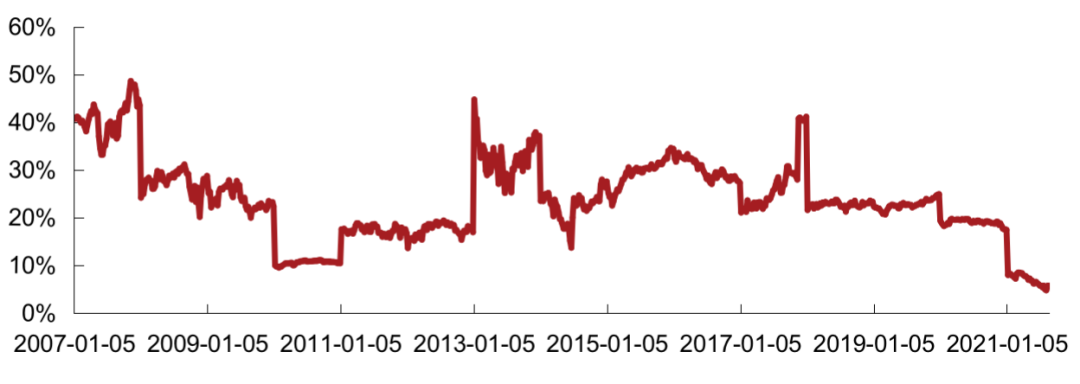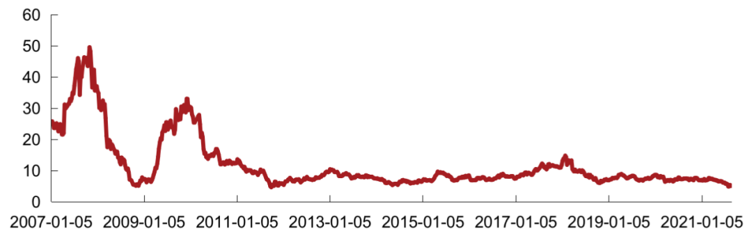 注:1)恒生中國內地地產指數的推出主要是為了反映前10只市值最大、流通性最高,在香港上市但主要營業收入來自中國內地的房地產股票表現。當前成分股共10只,分別為:中國金茂、中國海外發展、世茂集團、龍湖集團、華潤置地、龍光集團、碧桂園、中國恒大、碧桂園服務、融創中國