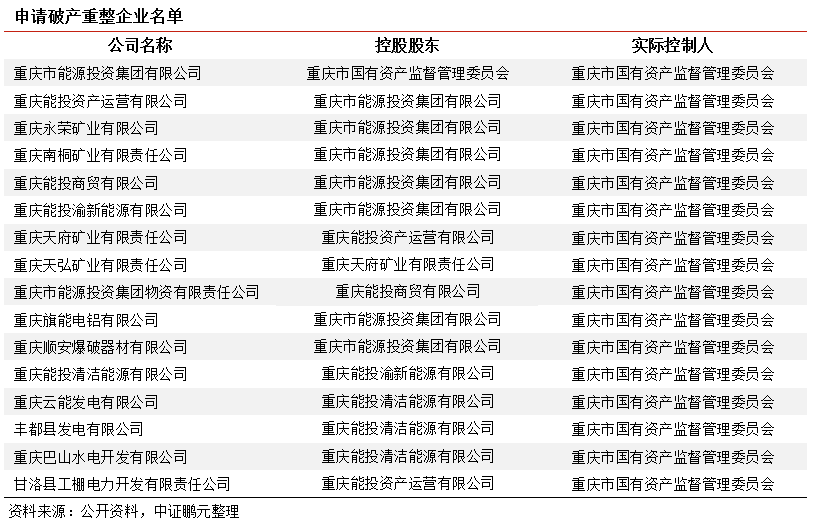 2022年4月11日,重慶能投為妥善化解債務風險,向法院申請重整。