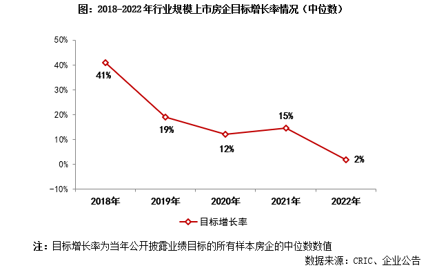 2022年至今,行業下行壓力持續、市場低迷、企業去化表現不佳,規模房企對全年銷售規模的預期更為謹慎。截至目前,僅有十余家上市房企公開披露了全年業績目標,數量較往年40家左右的水平銳減。且在公開披露年度業績目標的房企中,多數企業的銷售目標均有不同程度的回落。