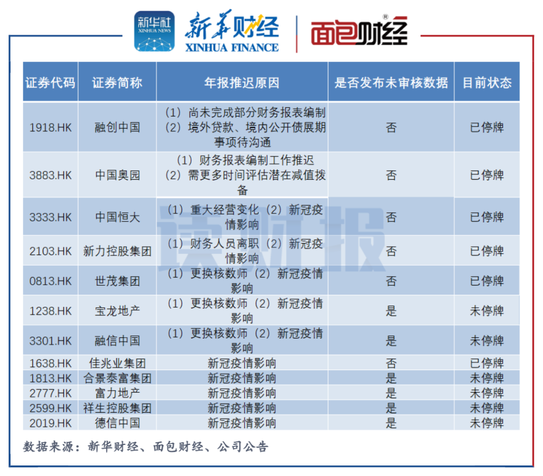 多家房企年報 “爽約”:疫情影響、核數師變更為主因