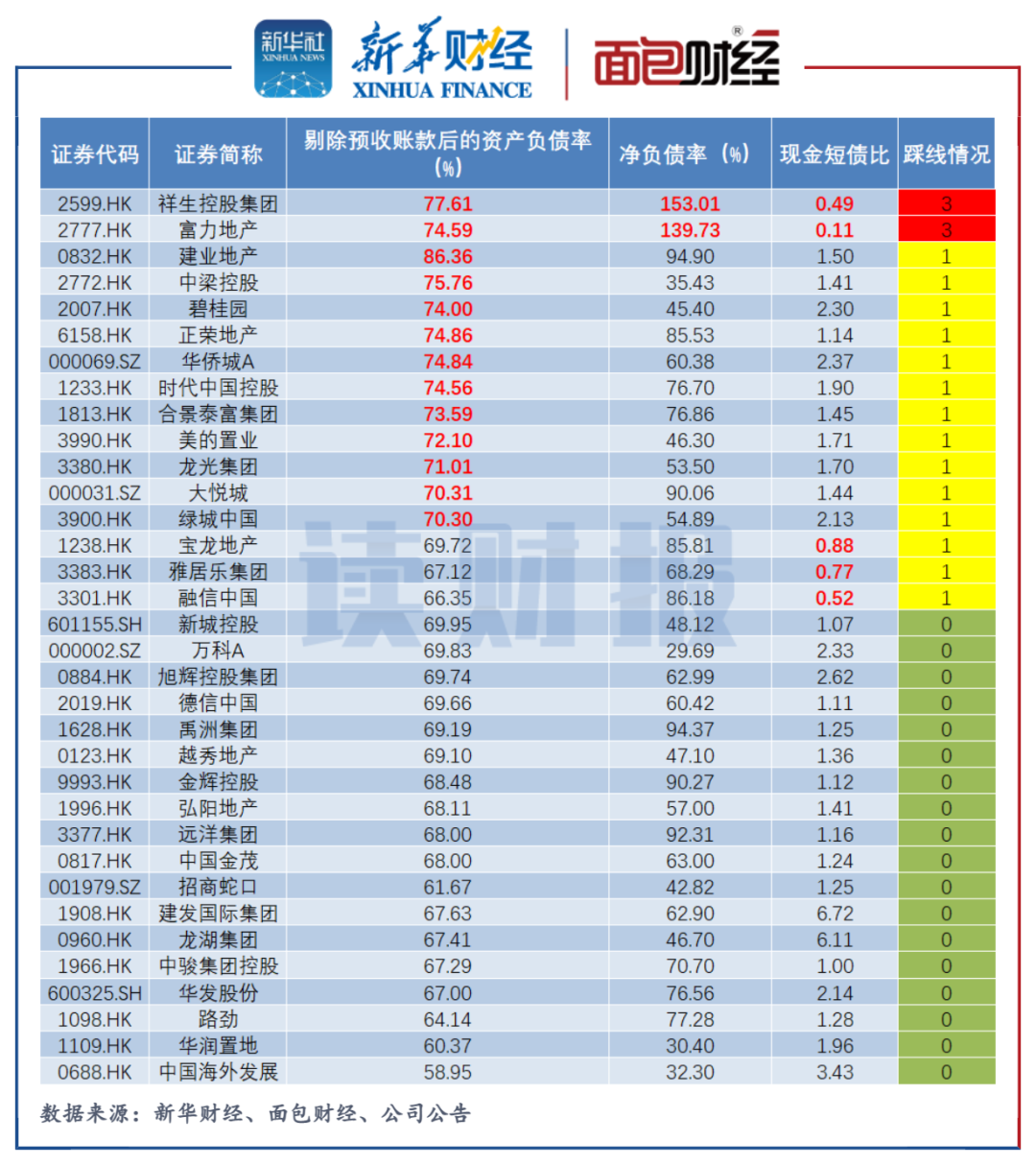三道紅線監測:富力地產、祥生控股三線全踩