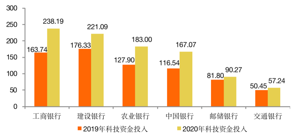 零壹智庫研究發(fā)現(xiàn),6家國有大行近兩年的科技資金投入逐步加大,尤其是工商銀行最高,2020年末達到238.19億元。零壹智庫注意到,工商銀行的智慧引擎所展現(xiàn)的強大科技實力,源自其早在2017年啟動設(shè)立的云計算、大數(shù)據(jù)、人工智能、區(qū)塊鏈、物聯(lián)網(wǎng)等七大創(chuàng)新實驗室,目前建立起一支涵蓋開發(fā)、測試、運維等于一體、規(guī)模達到數(shù)萬人的科技隊伍,技術(shù)實力長期以來處于銀行業(yè)領(lǐng)先水平。