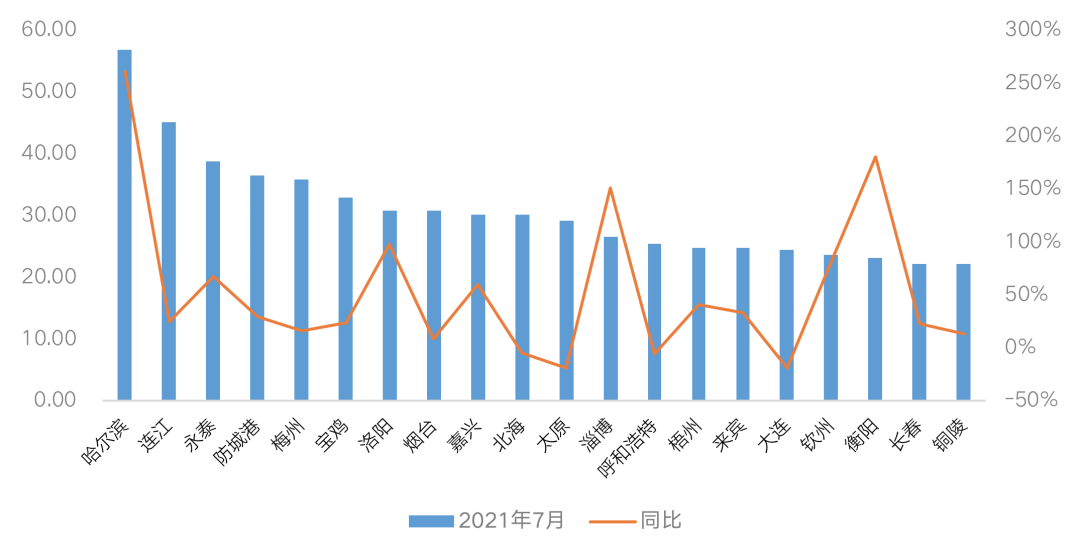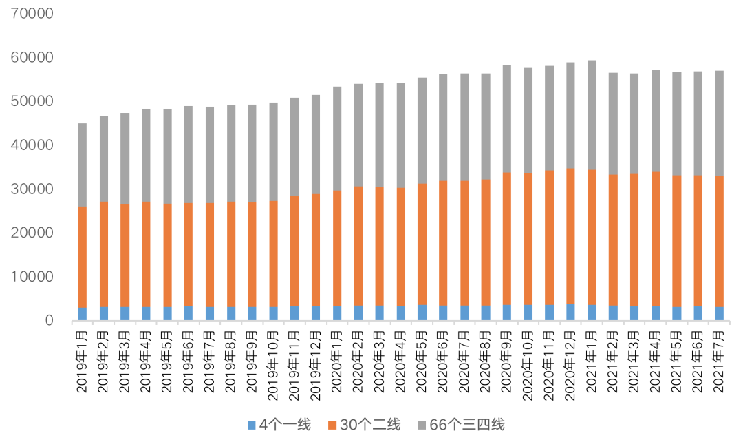 備注:2021年7月商品住宅庫(kù)存去化周期=2021年7月末商品住宅庫(kù)存量/近3月商品住宅成交面積均值