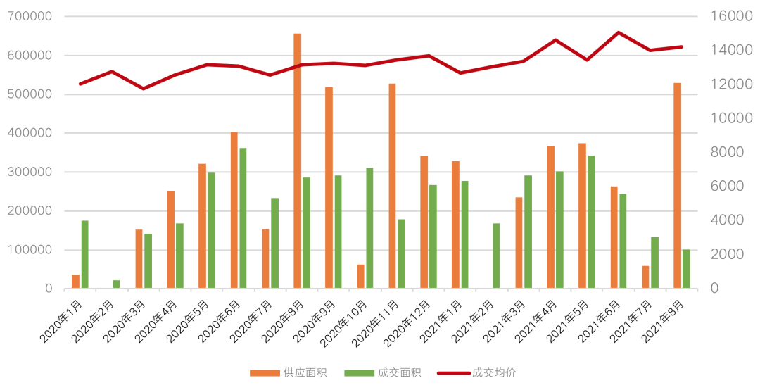 成交量?jī)r(jià)走勢(shì)(單位:平方米,元/平方米)