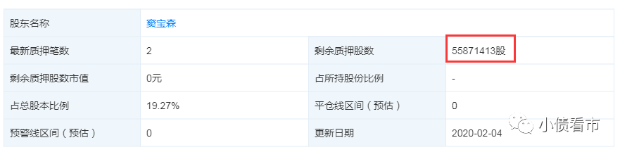 截至最新報告期,竇寶森、竇勇父子分別質押大業股份5587.14萬股和5349.68萬股,分別占其所持股份的90.26%和48.03%,可以看出股權質押比例較高。