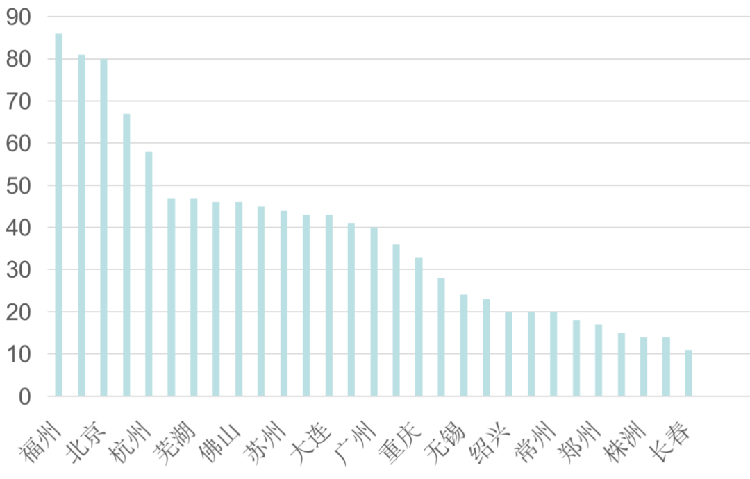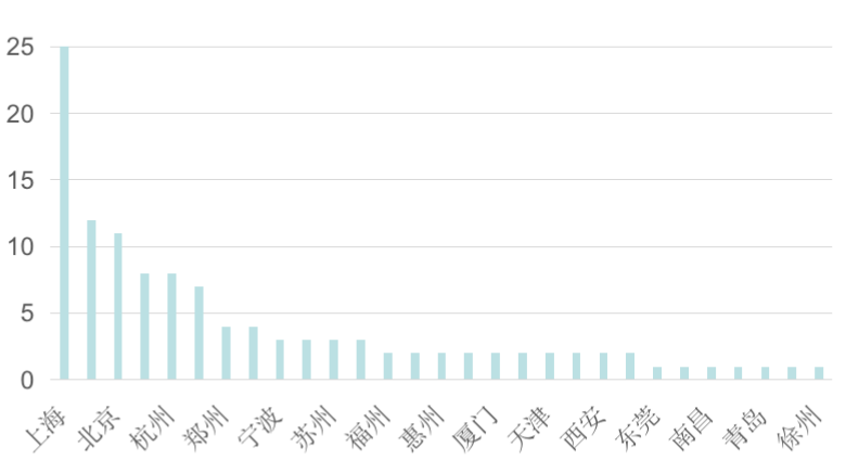 圖:2021年典型城市商業(yè)項目數(shù)量(個)