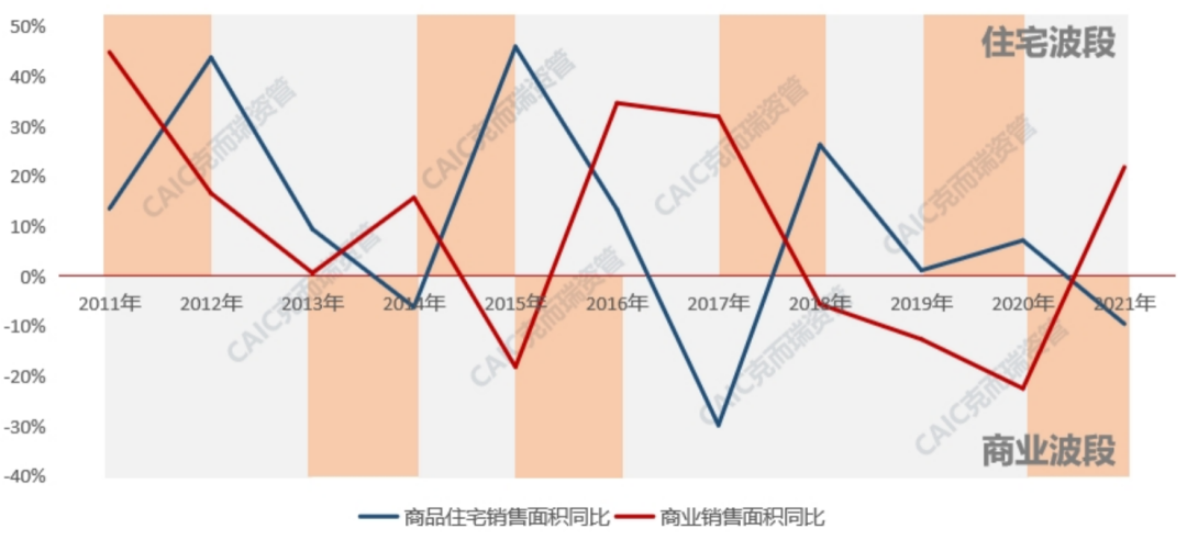 03 住宅與商業(yè)銷售周期背離兩者存在約3年差異