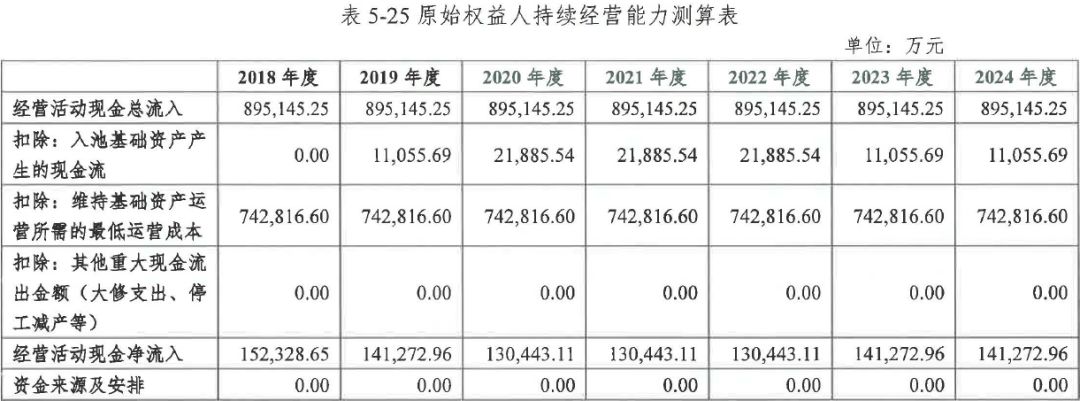 第一種操作是只將部分收入納入專項計劃,未納入專項計劃的收入可以用來覆蓋一部分成本。以“開源-北京自來水供水收費收益權(quán)2018年第一期資產(chǎn)支持專項計劃”為例,基礎(chǔ)資產(chǎn)系指原始權(quán)益人在專項計劃設(shè)立日轉(zhuǎn)讓給管理人的、因進行自來水供水業(yè)務(wù)而享有的特定期間內(nèi)的供水收費收益權(quán)。特定期間系指2019年的7月1日(含)至7月31日(含)、2020年、2021年、2022年的7月1日(含)至8月31日(含)、2023年、2024年的7月1日(含)至7月31日(含)的期間。但如果特定期間內(nèi)某一日出現(xiàn)水費收款賬戶歸集的基礎(chǔ)資產(chǎn)回收款達到或超出該特定期間必備金額(等于每個特定期間結(jié)束后的下個兌付日應(yīng)付當期資產(chǎn)支持證券本金和預(yù)期收益之和的1.30 倍(包括專項計劃費用))的情形,則該特定期間于該日提前結(jié)束。原始權(quán)益人持續(xù)經(jīng)營能力測算如下: