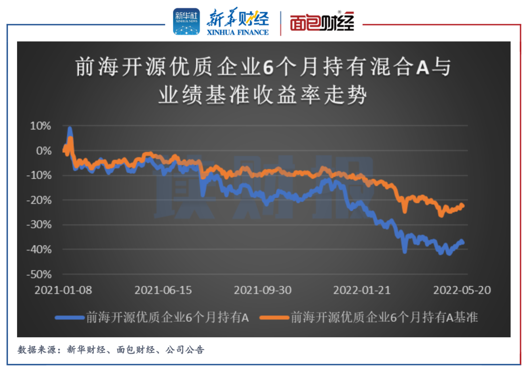 截至2022年5月23日,前海開源優(yōu)質(zhì)企業(yè)6個月持有混合A的單位凈值回升至0.6273元,年內(nèi)回撤26.83%,在新華分類偏股型混基中排名2685/2896;成立以來最大回撤達(dá)到46.62%,累計跑輸基準(zhǔn)近15個百分點。