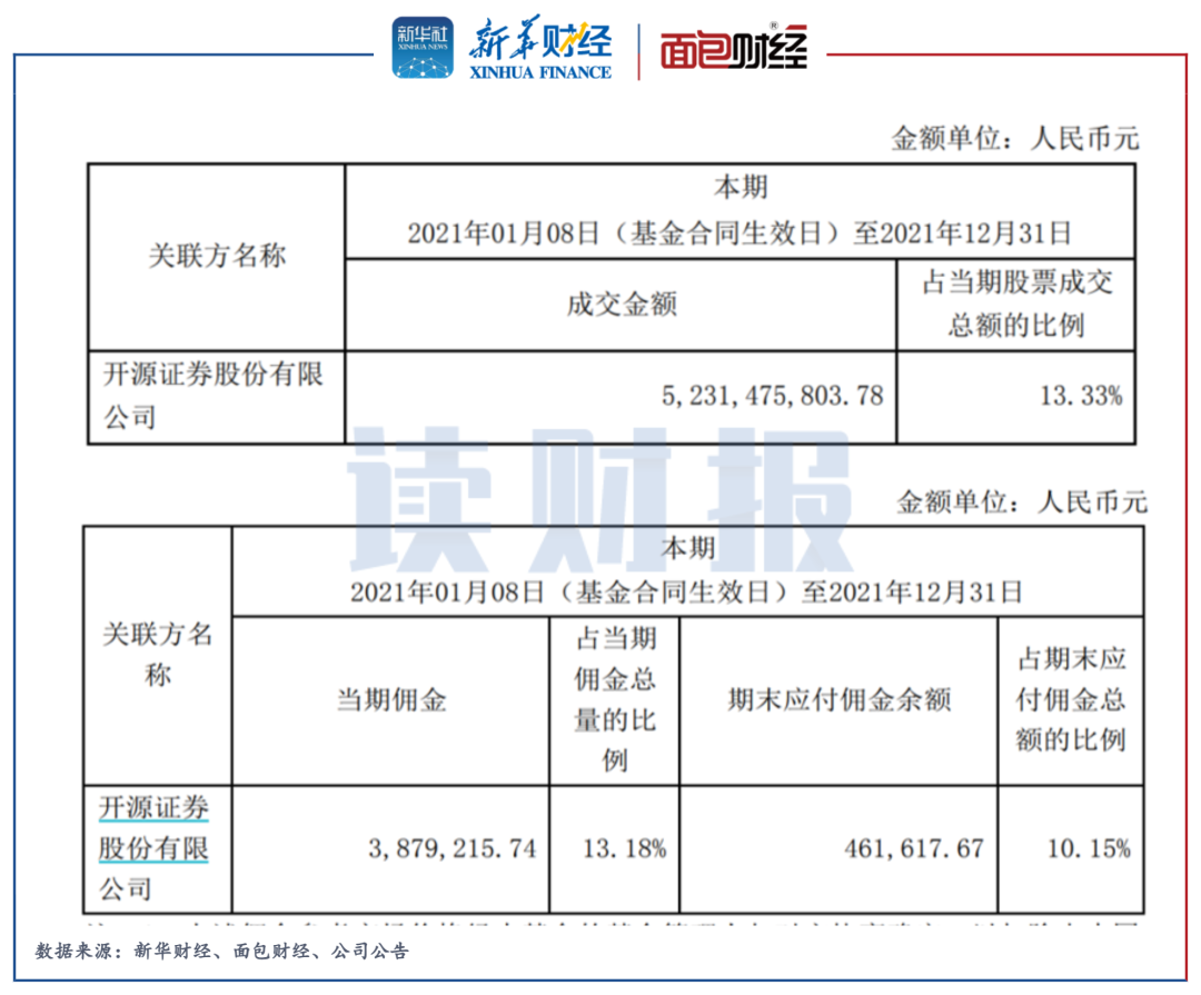 另外,基金2021年年報中提及,前海開源優(yōu)質(zhì)企業(yè)6個月持有混合約52.31億元的股票成交通過關(guān)聯(lián)方開源證券交易單元進(jìn)行,占當(dāng)期股票成交總額的13.33%;當(dāng)期應(yīng)支付給開源證券的傭金達(dá)到387.79萬元。公開資料顯示,開源證券為前海開源四大股東之一,持有公司25%股份。