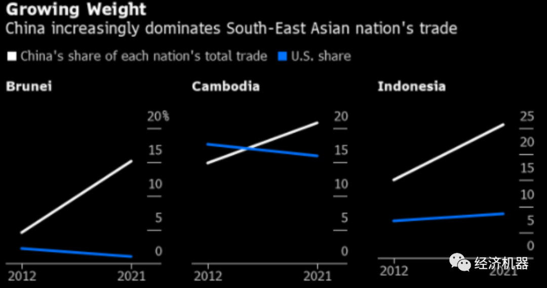 2012 年開始,東南亞國家聯(lián)盟 (Asean) 成員國之間的協(xié)議例行協(xié)調(diào),如今,包括中國在內(nèi),已成為世界上最大的自由貿(mào)易集團。區(qū)域全面經(jīng)濟伙伴關(guān)系(全稱)于1月1日生效。從廣義上講,它旨在降低16個與東盟有貿(mào)易往來的國家之間的關(guān)稅和其他商品貿(mào)易壁壘。在印度于2019年退出后,這一數(shù)字降至15,稱其希望保護服務(wù)業(yè)工人和農(nóng)民。還有人擔(dān)心該國會被來自中國的廉價商品淹沒。美國并沒有被刻意排除在 RCEP 之外。它首先需要與東盟達成自由貿(mào)易安排,然后申請加入。同時,該協(xié)議堅定地強調(diào)了中國在該地區(qū)貿(mào)易中的主導(dǎo)地位。隨著美國前總統(tǒng)唐納德特朗普敦促他們避開中國的基礎(chǔ)設(shè)施貸款和 5G 技術(shù),中國一直在尋求進一步與鄰國融合。