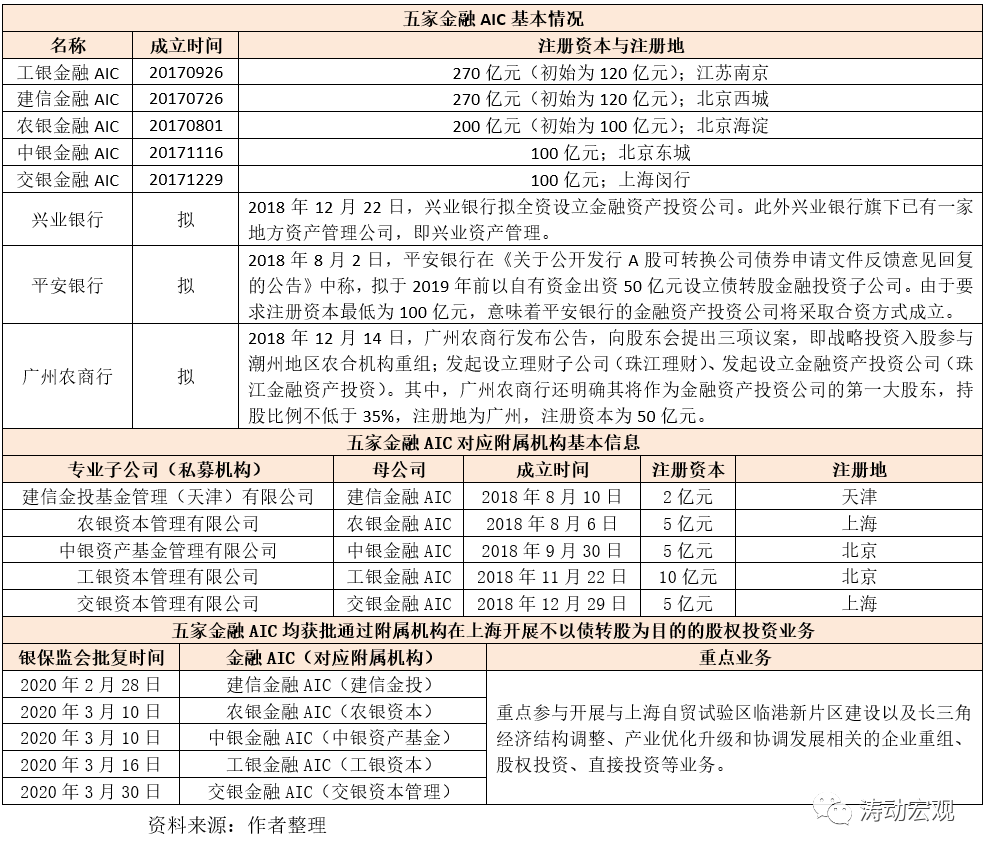 在這種背景下,讓商業銀行成立專門開展市場化債轉股業務的子公司(即金融AIC),將債轉股的綜合收益內部化,以掃清商業銀行更大規模參與債轉股的障礙,成為市場化債轉股工作的一項核心內容。