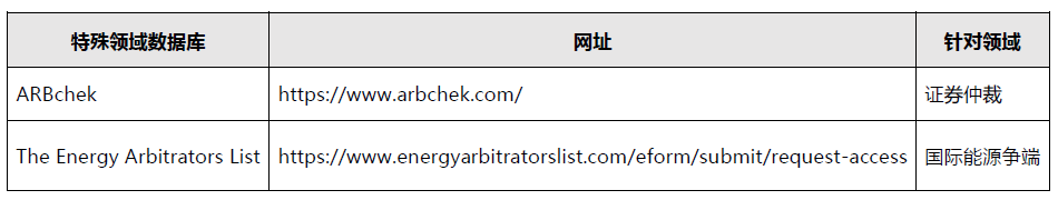 許多仲裁機構、仲裁協會和民間機構會制作仲裁員數據庫方便當事人選擇仲裁員。同時,在一些特殊的仲裁領域也會有專門的數據庫供查詢。[7]