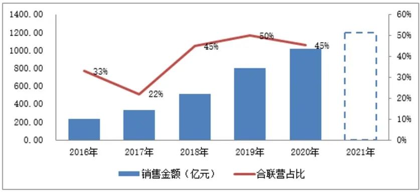 然而其中合聯營公司部分的銷售金額為460.93億元,占比45%