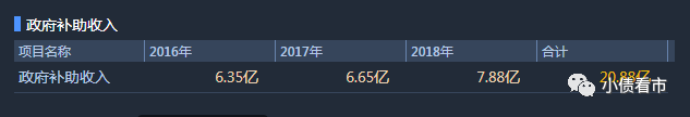 2016-2018年,春華水務(wù)獲得政府補(bǔ)助收入分別為6.35億、6.65億以及7.88億元,合計20.88億元,利潤總額對補(bǔ)貼依賴度較大。