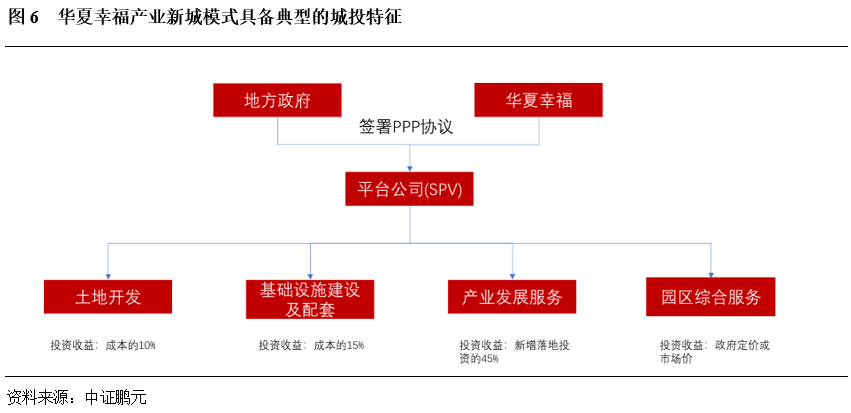 2002年,廊坊市政府決定建造廊坊開發區固安工業園項目,通過公開競標方式引入戰略合作者,最終確定與華夏幸福簽訂排他性協議,以PPP合作模式進行園區開發。在當地政府授權下,華夏幸福設立三浦威特平臺公司負責園區的規劃設計、投資建設、運營管理等一體化業務。在收益回報機制方面,對于規劃設計與基礎建設項目,固安縣政府會根據華夏幸福的項目投資成本給予10-15%的補償作為企業的投資收益;對于產業發展服務,政府會根據當年園區新增落地投資額的45%進行分配。在該模式中,華夏幸福的利潤回報基于固安工業園區整體的運營情況和增量財政收入,若財政收入不增加,企業無利潤回報,同時政府無需承擔債務風險。但在實際運營過程中,華夏幸福則更多地依靠在土地一二級開發過程中的收益去反哺產業園區的建設和運營,其更多地受到了房地產市場的影響。